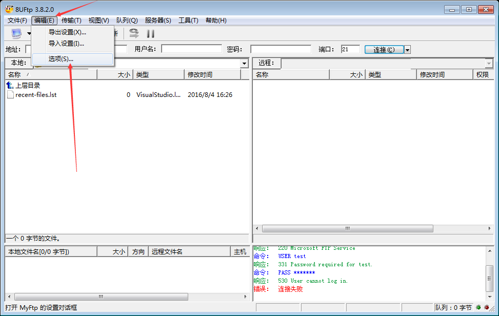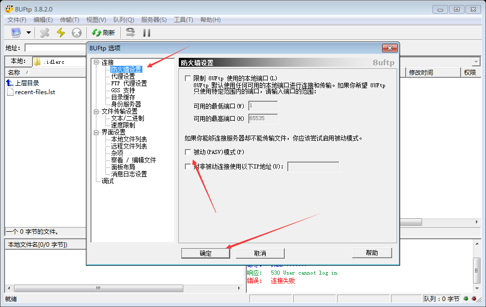您也可以設(shè)置您的FTP工具,取消被動(dòng)傳輸:如 8UFTP的設(shè)置